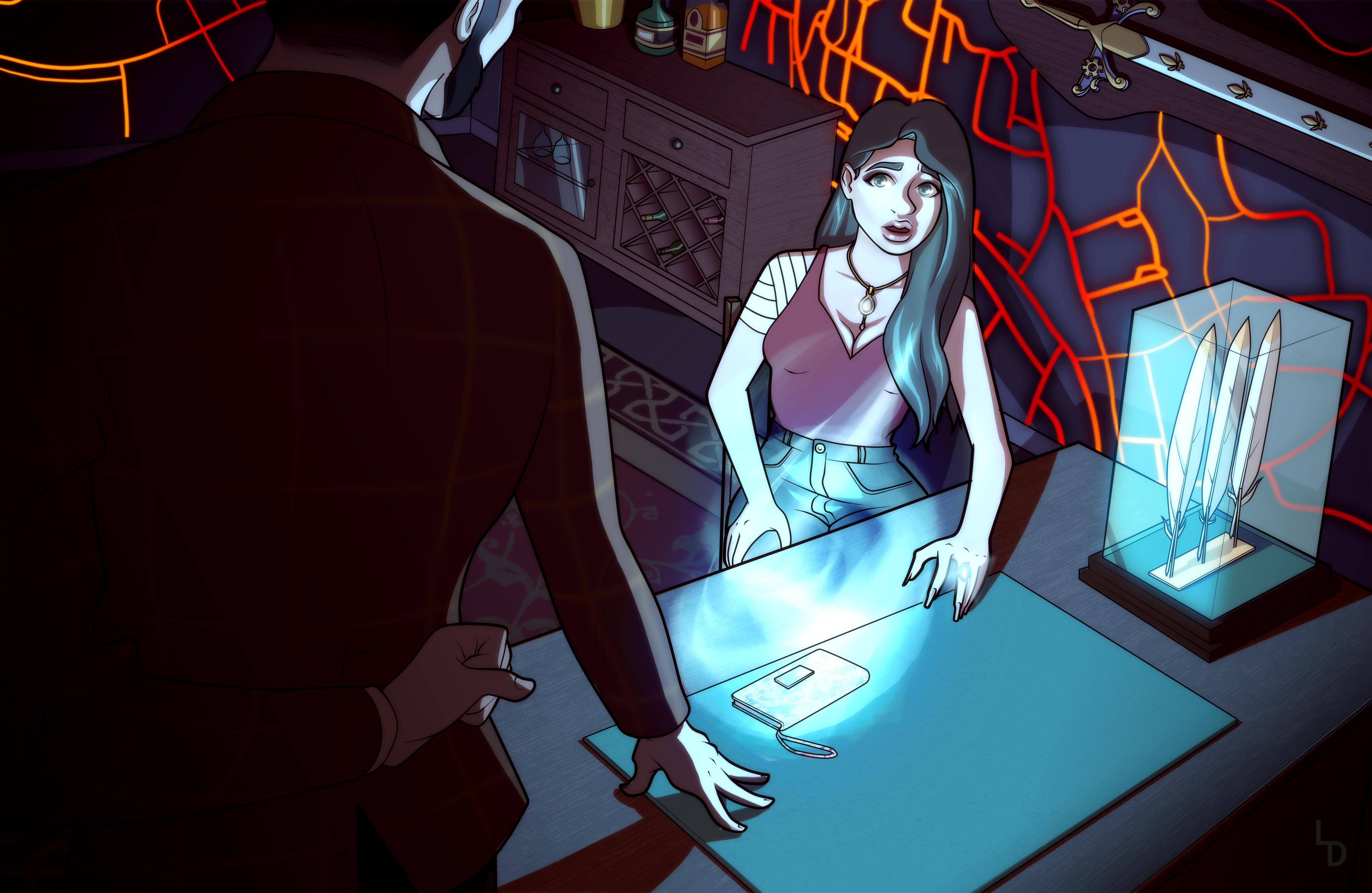 Jessy meets Sol, who asks her questions and makes her offers while sharing little real information aside from a connection to Ellis O’Donovan. The man lives and breathes Toronto’s economic machinery, and seeks to stop Tan’s subversions before disaster strikes and destroys the city itself. Jessy makes a sacrifice to Sol and is given strange golden coins which have the power to disrupt the summoning ritual Tan is planning. Jessy will go along with Sol’s plan, promised easy riches and whatever power she asks for. Some time later, she visits a dementia-ridden old lady who Jessy has tricked into thinking is her grandmother. The visit turns dangerous as Jessy’s real grandmother appears, possesses the old lady, and briefly steals the ring from Jessy. Chaos ensues.