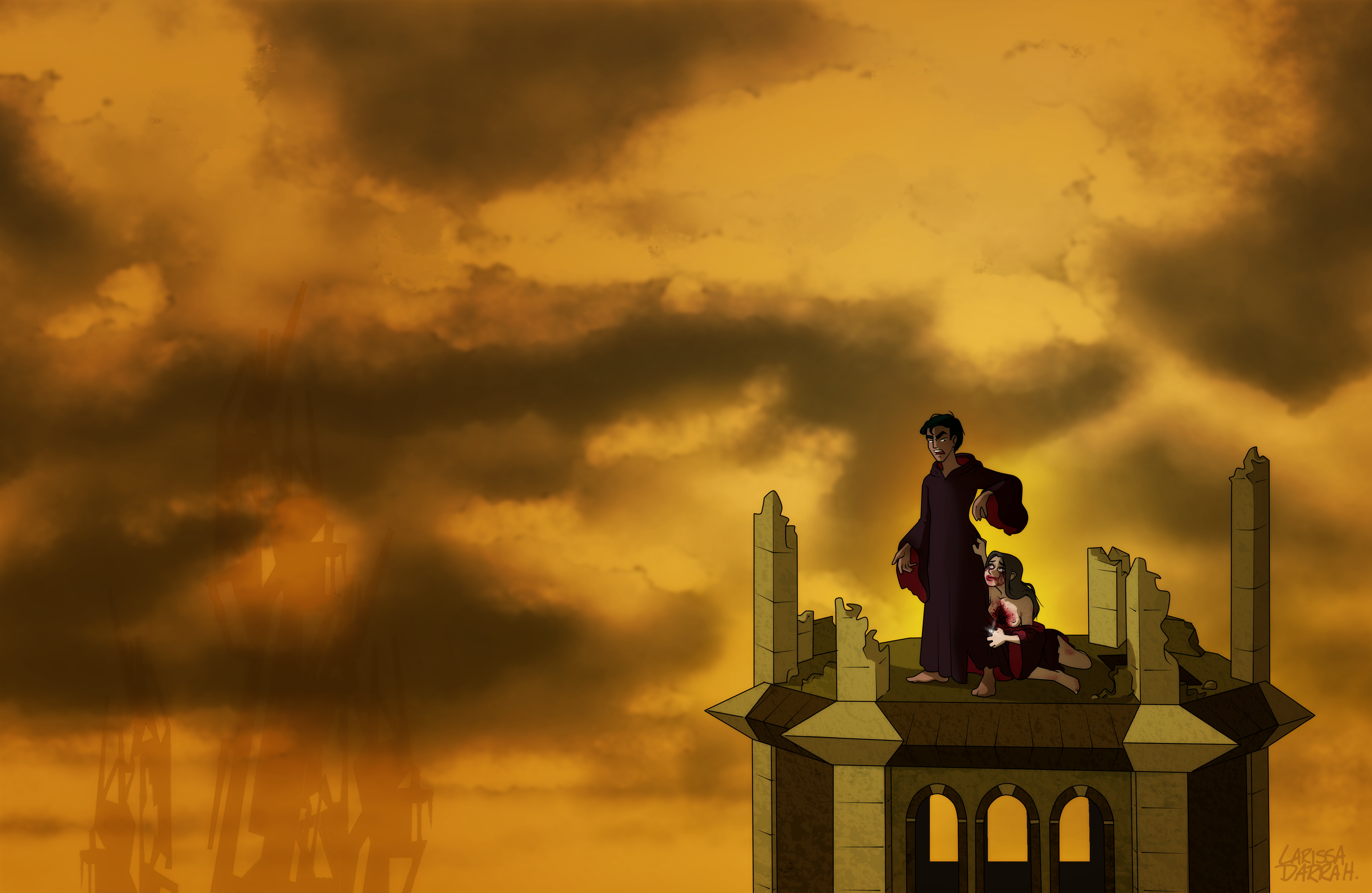 Tan is the first to speak, wondering aloud what happens if he jumps. Jessy, wobbly on her feet, focuses her hazy eyes for long enough to appreciate how high up they are. Death. Certainly, death is what would happen. Tan disagrees with her. He feels like death is what is currently happening, death is where they stand right now. They must be dead and Jessy killed them, or else the fools celebrating their own abuse below spoke the truth and this is their only escape. It makes no sense, nor does it matter. Tan sees but one choice. Jessy listens slackjawed, too hurt to appreciate the weight of what he’s saying but confident that he’s right. Whether dead, dying or horribly alive, Jessy knows she can’t make it out of this place without Tan. She’ll follow him. Tan scowls at that and pushes Jessy away from himself, away from the edge. He shouts over the howling winds to stop her fucking lying. He’s over it. Jessy can’t respond, she tries but her mind is such a haze that thoughts are left half-formed and aborted. Angela’s fury and fear boils within, but neither of them want to inhabit Jessy’s wounded flesh. Tan says something, but the words reach Jessy’s consciousness too late to respond. He tried to love her. He doubts it’s even possible to. She wants to respond, desperately wishes she could have Tan’s love again, but he has already jumped. His robe flaps and snaps loudly in the rushing winds for a moment, and then he’s gone. What else to do but follow?