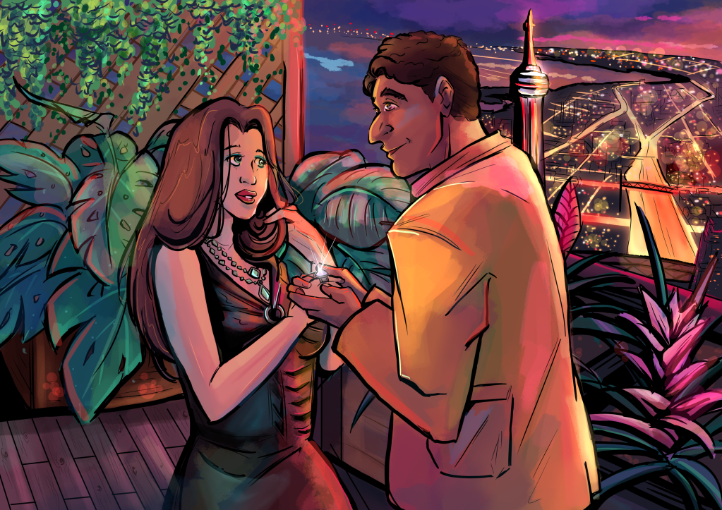 I first took those ideas, mostly the cell shading, into a redo of my Mental Illness Chic project in 2019, but I really developed it in this project. These illustrations in Jessy’s Story were so large and detailed and with so many layers that I think I can at least partially blame it for my graphics card starting to go out on my computer this year! Many of the pieces had to be split into a sketch file and a final illustration file because even the sketches had several layers. Jessy Story sketches, the more detailed ones, tended to be collages of photos I’d taken (thanks again goes to my husband for constantly being a model) and drawings I’d done in my sketchbook. I really loved using photos from an abandoned mining building I’d snuck into with my friends while we were teenagers for Wilma’s set pieces. Most of my other references, especially for Jessy’s wardrobe, came from images on my Pinterest moodboard for the project. Other than that, it was just hours and hours of pure drawing.