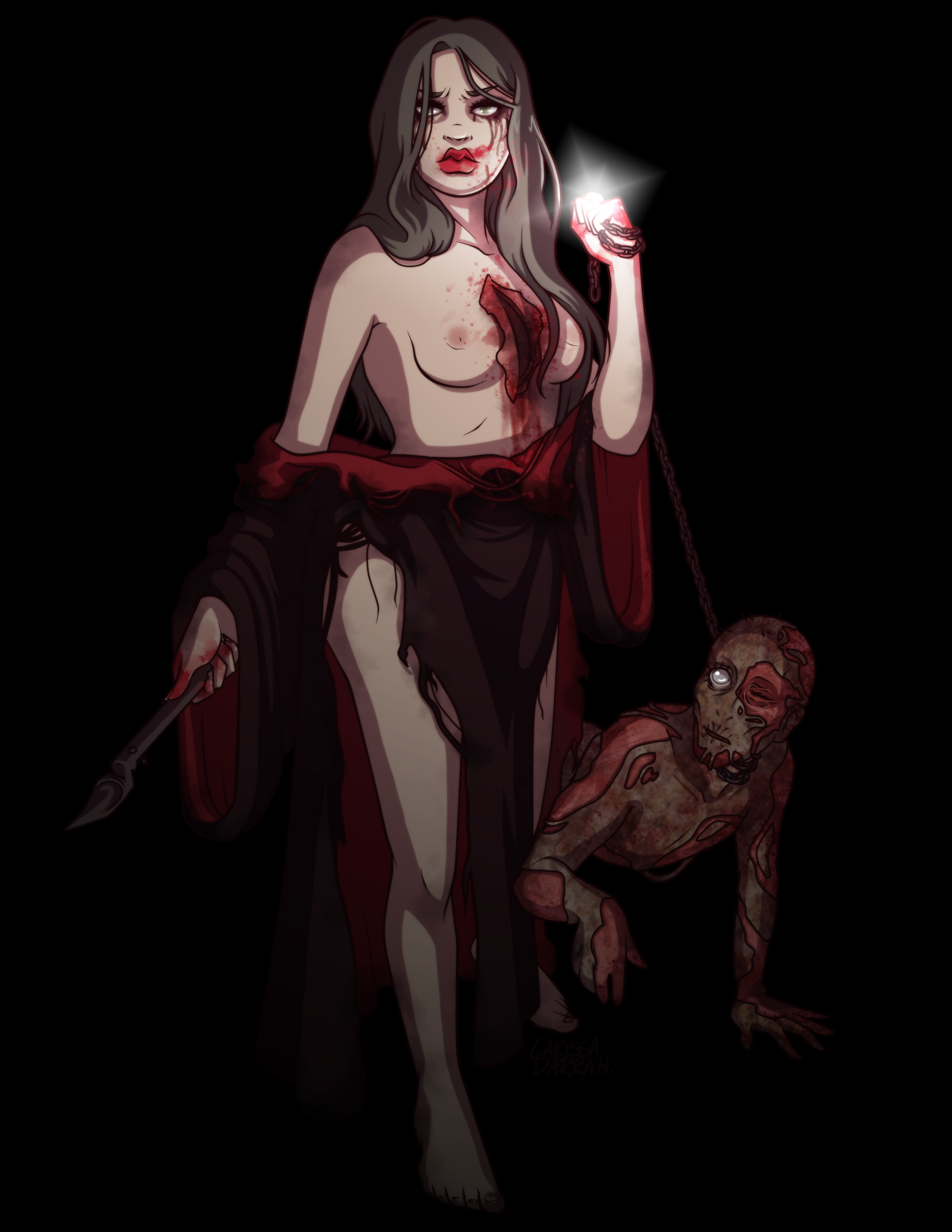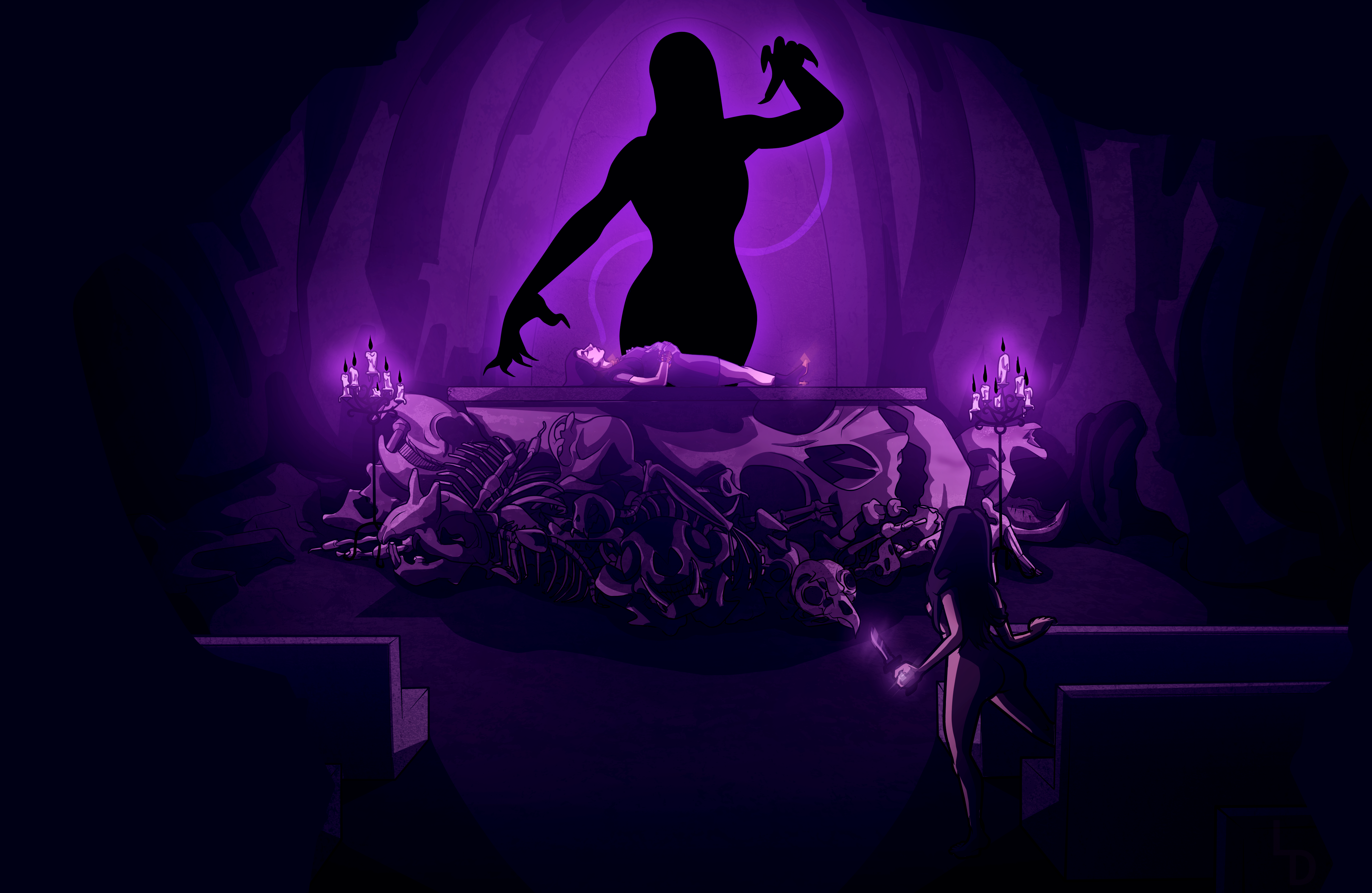 Jessy’s Story is the biggest art project I’ve ever done in my life and I’m so grateful for the love and support I had from my partner, in both life and this project, without him I don’t think I could have finished all of this. He kept me propped up when I was too hard on myself, as most artists end up being. Through this project, I’ve been able to grow exponentially in my art practice. I started Jessy’s story illustrations with mostly a visual concept, highly stylized and dramatic, like the character Jessy herself, while also trying to keep the dark and edgy nature of Kult. I learned the digital cell shading style that I used in college, and even the textures throughout the illustrations in Jessy’s were assets from one of my professors!